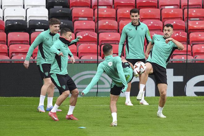 5月7日,毕尔巴鄂竞技队球员在训练中。新华社
